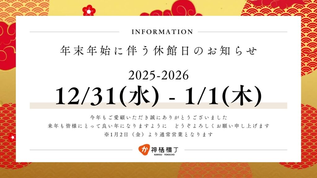 年末年始に伴う休館日のお知らせ